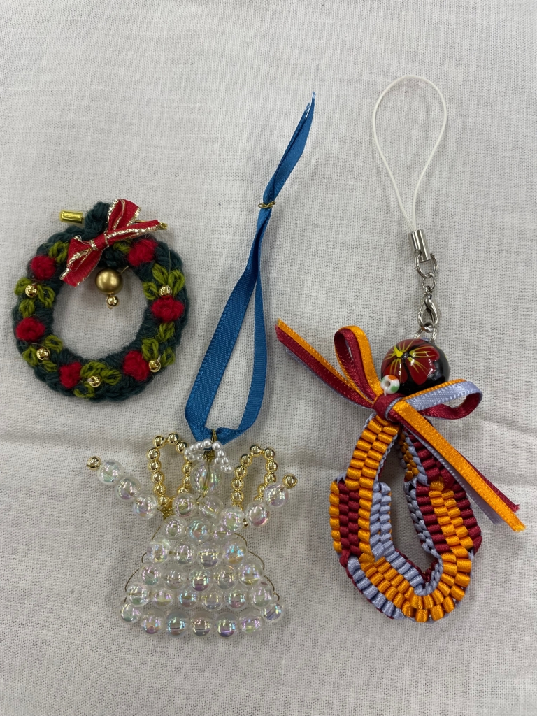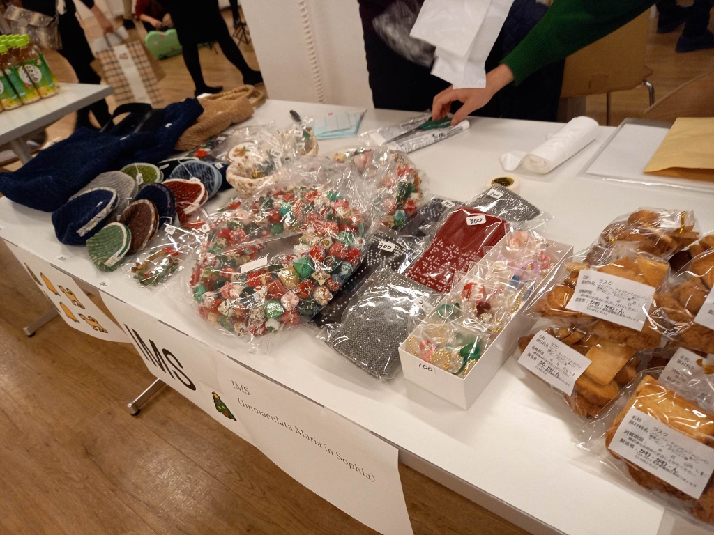 野村さんよりひと言 10年ほど前にソフィア会に編入させていただいた聖母看護学科同窓会(IMS=ImmacuIata Maria in Sophia)です。 役員による手作りグッズを販売しています。 クリスマスにちなんだ物や、日常使いできる品も揃えています。 ささやかな品々ですが、一つずつ心を込めて手づくりしていますので、ぜひ手に取ってお買い求めいただければ幸いです。よろしくお願いいたします。