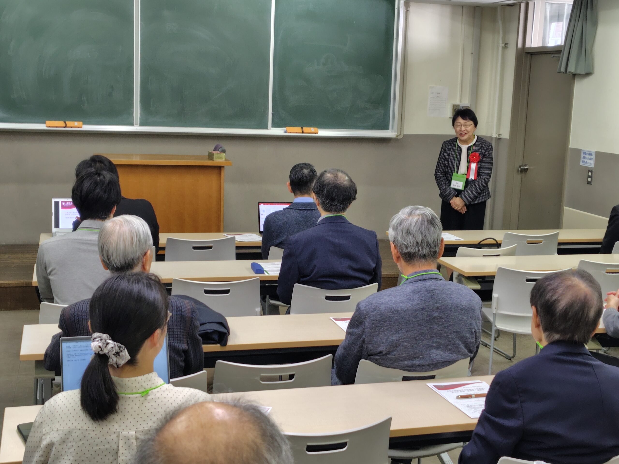 総会の第一部は、来賓としてご出席いただいた杉村学長のご挨拶から始まり、24年度・25年度の活動報告と計画、同期の決算報告と予算を説明しました。第二部は、沢味健司氏(EY新日本有限監査法人パートナー)を講師にお招きして、「気候変動をめぐるファクトと政府・企業の動向」というテーマでお話を伺いました。