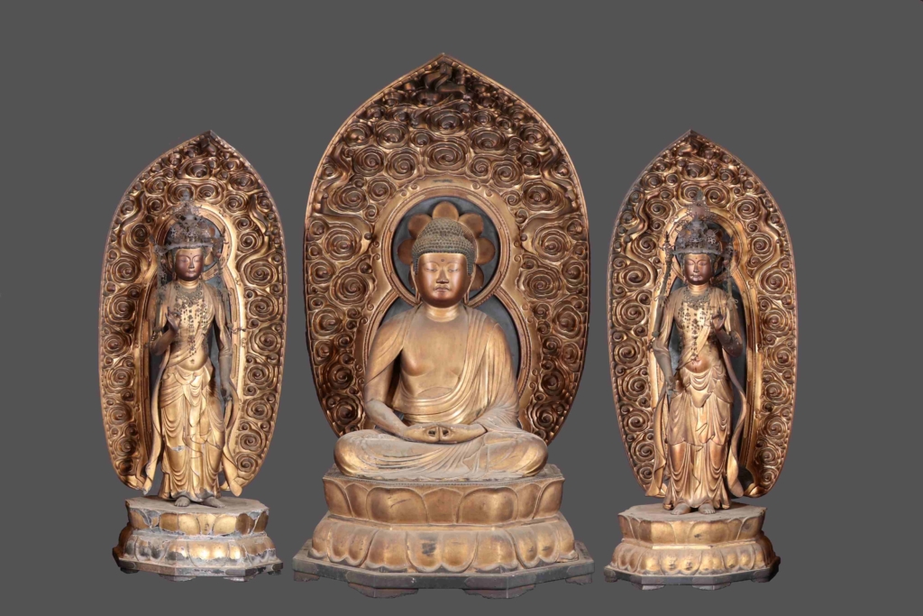今回紹介させていただきますのは、平安時代作の本尊阿弥陀如来、室町時代作の観音勢至両菩薩です。令和五年に福山市重要文化財に登録されました。