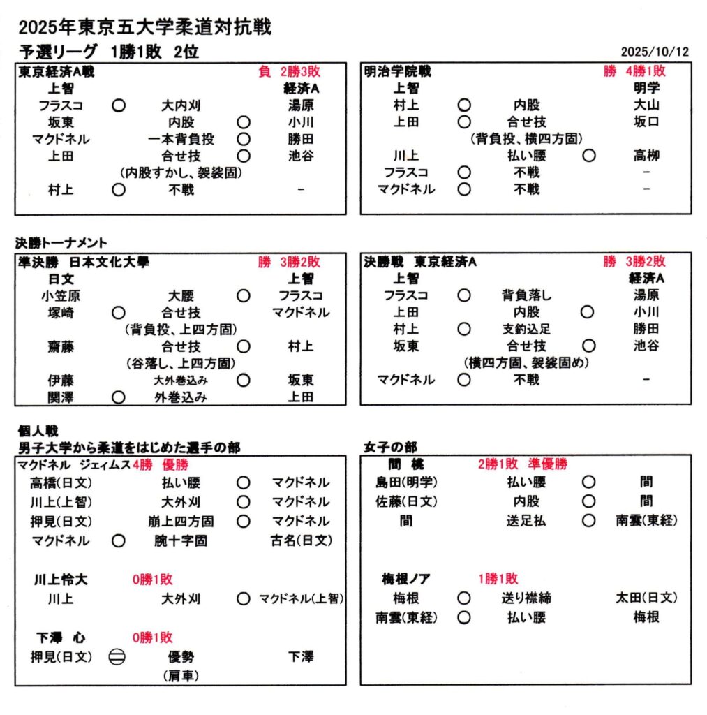 今年は全6チームで行われ、上智はBブロックで2位、順位決定戦(準決勝)でAブロック1位の日本文化大学(ほぼ最近は優勝している)に勝利。